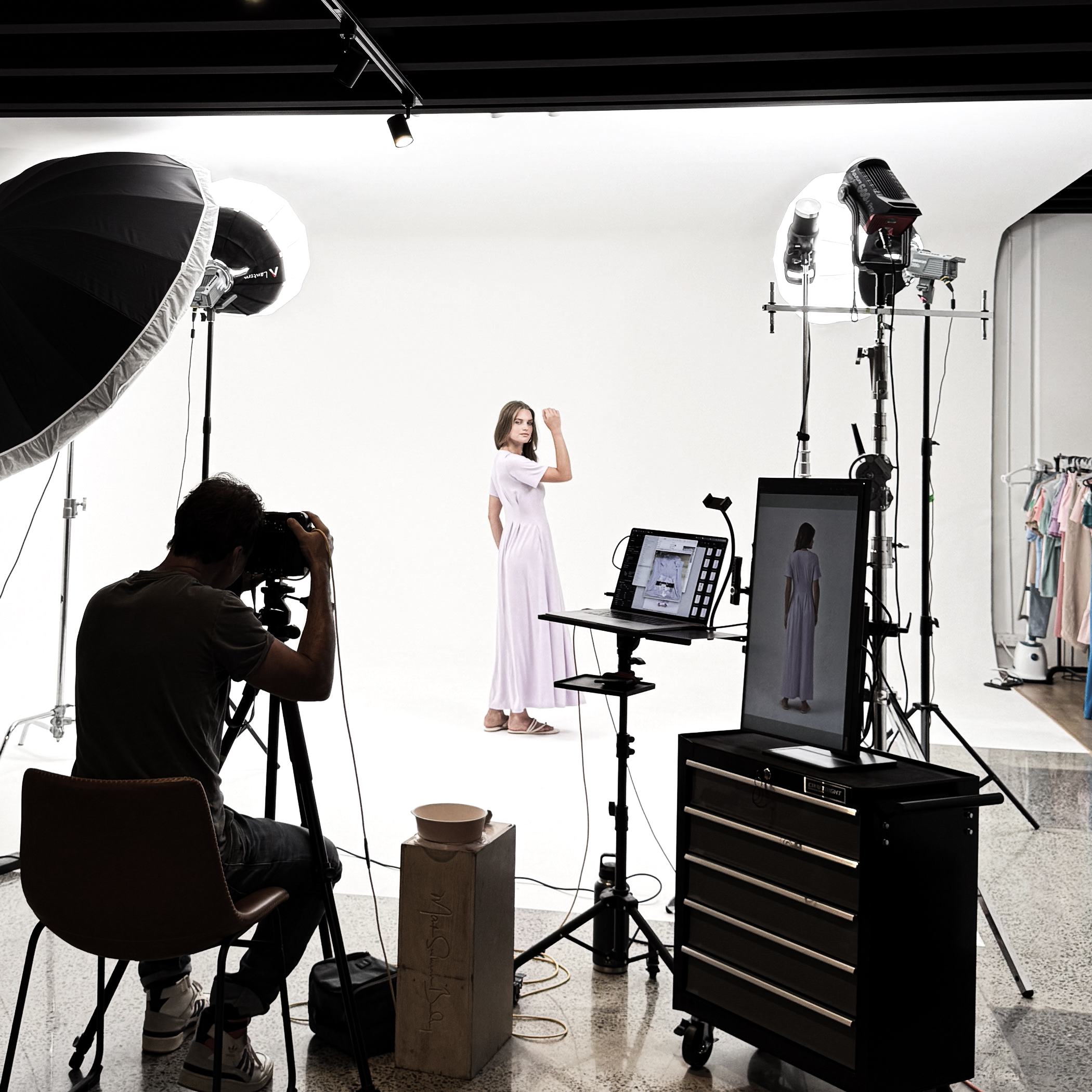 The best of both worlds. Seal out the world entirely for full blackout control, or swing open the roller door and let the golden rays pour in. Whether you’re crafting moody fashion editorials or crisp product shots awash in daylight, our versatile studio gives you the power to create exactly the vibe you want.